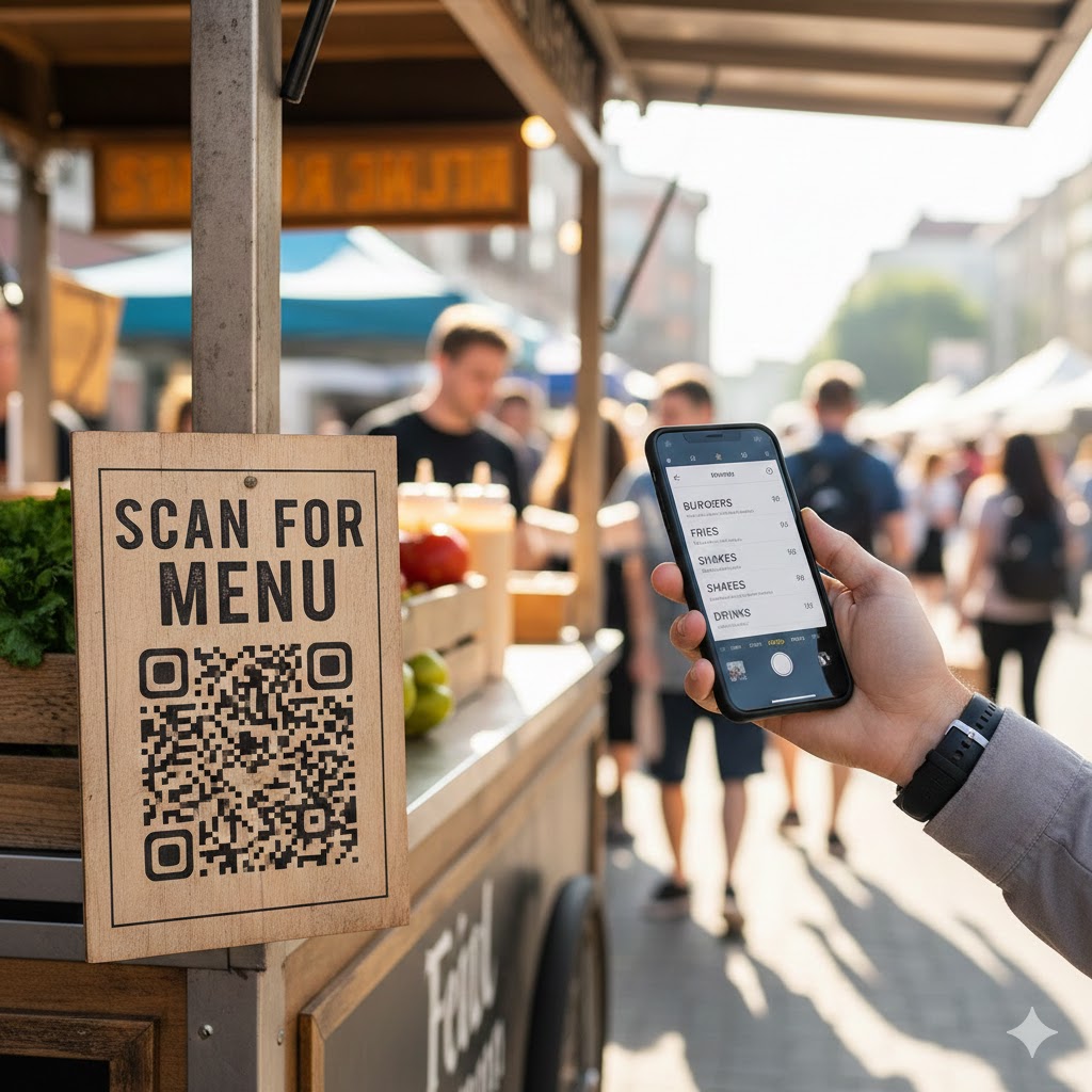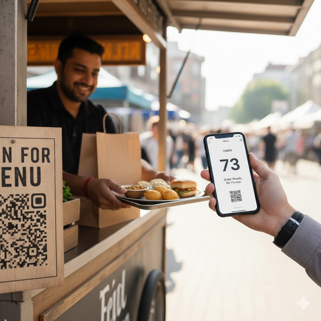 Your QR code is placed on the cart/stall. Customer scans & menu opens instantly.
