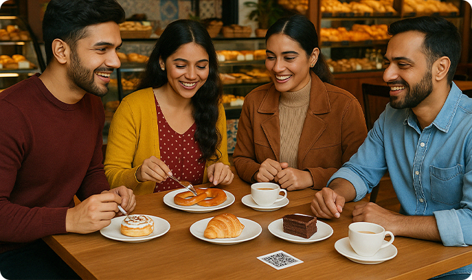 No app needed. They order what they like and pay using UPI, card, or wallet.